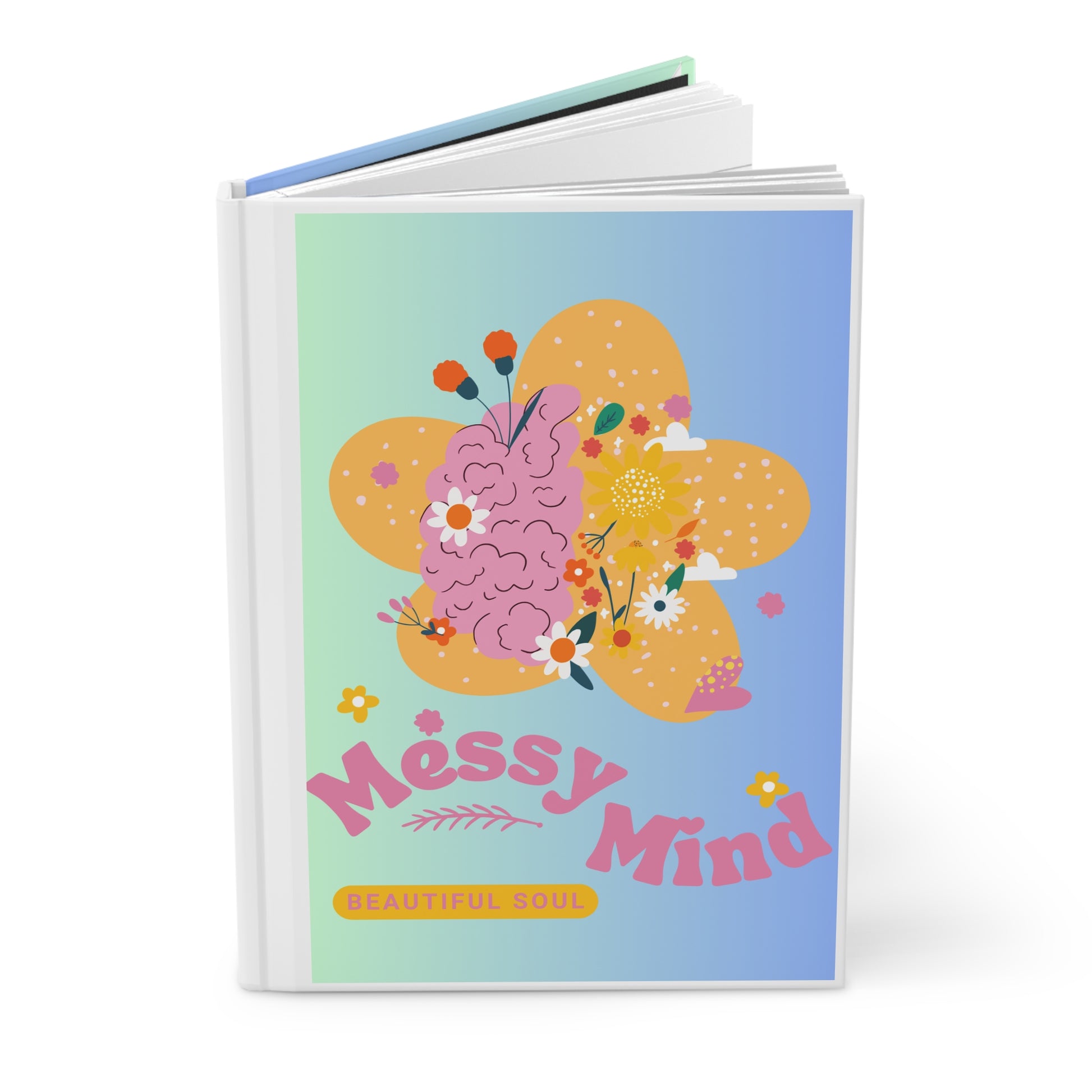 A stylish and durable journal with the phrase 'Messy mind, beautiful soul' printed on the cover. Perfect for creative minds looking to jot down their thoughts and ideas. Ideal for writers, poets, and artists. Great for gift-giving during birthdays, holidays, or graduation.